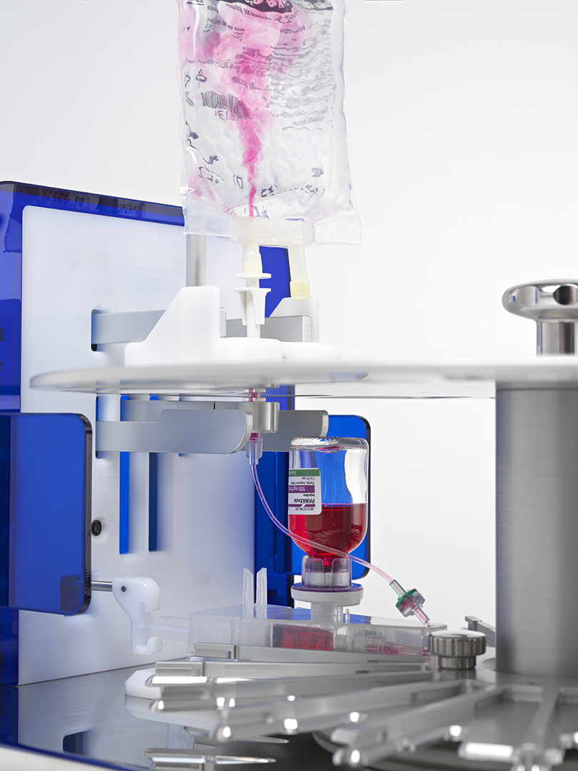 The system is based on a robotic unit, able to fully automatize the dosing process (i.e.: the transfer of drugs from vials to infusion bags). Patient doses, ready to be administered, are prepared in a sterile environment, and the compounding robot, is placed under a sterile laminar flow hood. A closed system prevents the contamination of the environment by toxic drugs.